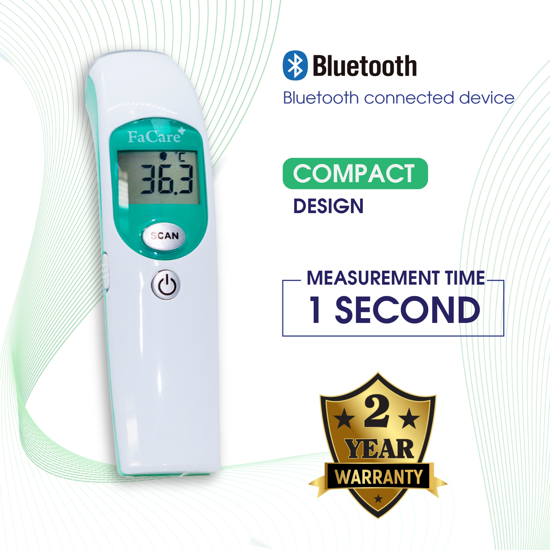 Không chỉ là một chiếc nhiệt kế hồng ngoại thông thường, FaCare FT-F31 còn được trang bị tính năng kết nối Bluetooth hiện đại, giúp người dùng đồng bộ dữ liệu thân nhiệt trực tiếp lên ứng dụng FaCare trên điện thoại.